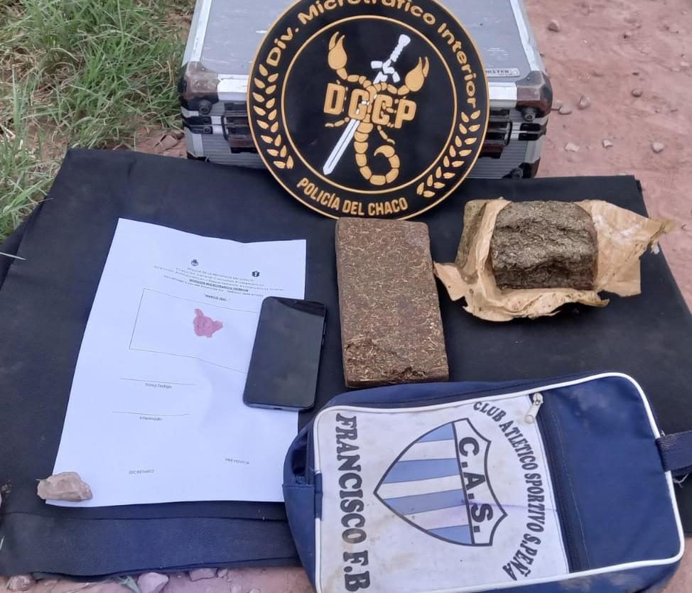 En el lugar, secuestraron un trozo tipo ladrillo de marihuana con un pesaje de 715 gramos y un envoltorio de 420 gramos. También incautaron un bolso de mano, un Motorola y una Honda Wave.