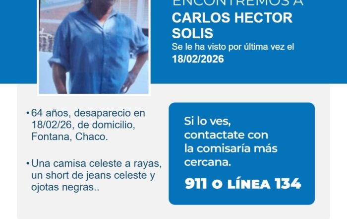 La Policía del Chaco emitió un pedido de colaboración a la comunidad para dar con el paradero de Francisco Mauro Tonzar, de 35 años, quien fue visto por última vez el pasado 12 de febrero de 2026. La denuncia fue radicada en la Comisaría Sexta Metropolitana, desde donde se activó el protocolo de búsqueda. Según […]