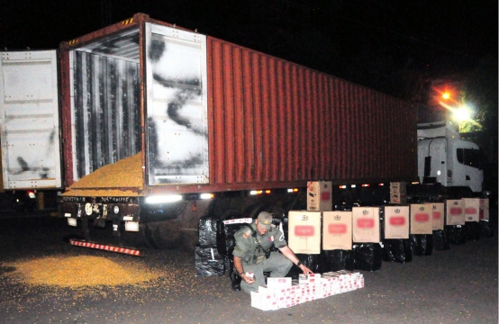 Al realizar la inspección correspondiente, los gendarmes observaron irregularidades en la documentación, por lo que procedieron a efectuar la apertura del precinto aduanero en conjunto con personal de AFIP- DGA Posadas, constatando entre un cargamento de granos de maíz del interior del semirremolque, 82 cajas con 4.100 cartones de cigarrillos de procedencia extranjero sin el aval legal, en infracción a la Ley 22.415 «Código Aduanero».