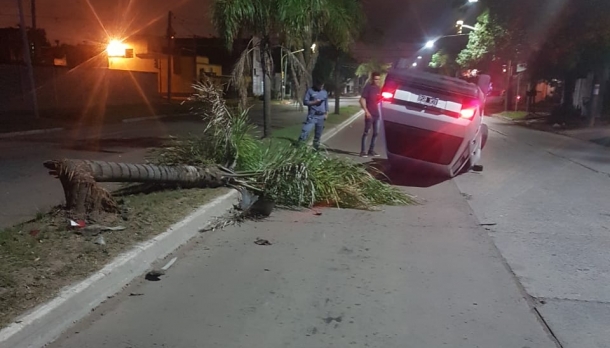 De acuerdo al informe policial, el vehículo subió al cantero central con su automóvil, para luego colisionar contra una palmera, haciendo que el vehículo dé vueltas, quedando con sus cuatro ruedas hacia arriba.