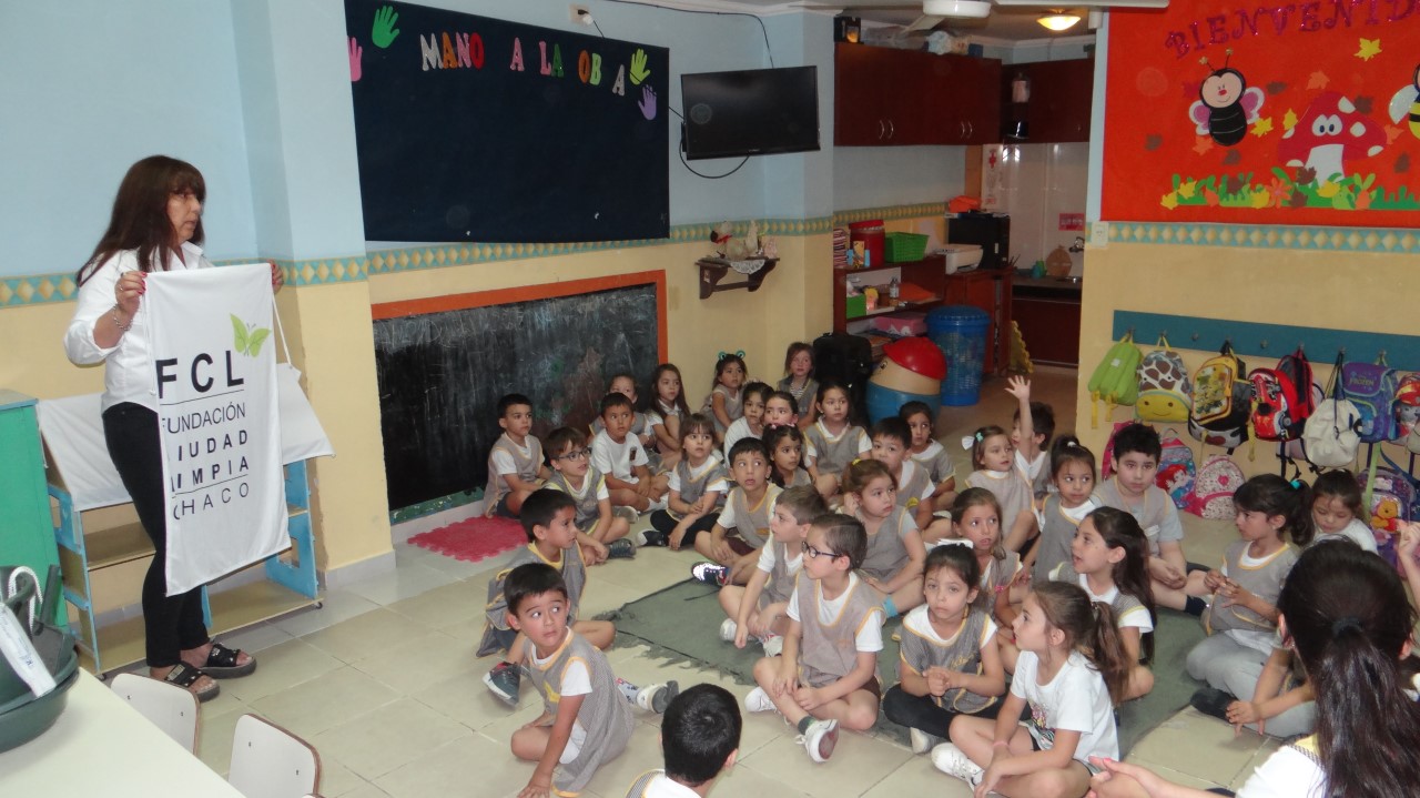 La Fundacion Ciudad Limpia dentro de su amplia gama de actividades también apuesta a los más pequeños para buscar aliados en el cuidado del Medio Ambiente, esta vez lo hizo en el Jardín de Infantes del Colegio San Roque de Resistencia.
