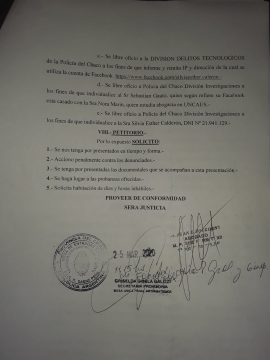 La denuncia hecha por el Municipio va acompañada de impresiones de Facebook y se solicitó que se libre oficio a la firma Facebook Inc. a fin que informe los siguientes datos respecto al usuario de la red social Facebook con URL https://www. facehook.com/carlos.gauto.121 y https://www.facebook.com/silviaesther.caleron