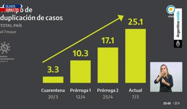 En tal sentido, destacó que el tiempo de la duplicación de casos pasó del 17.1 a 25.1, que es uno de los índices esperados. En esa línea, en Chaco la duplicación es de 25.4.