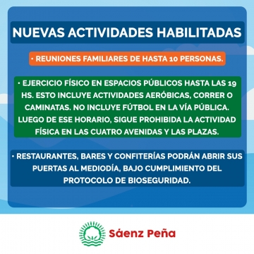 Mientras se aguarda la respuesta del Gobernador, se flexibilizan las siguientes actividades: