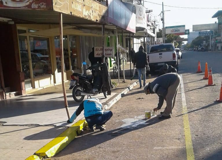 Continuando con los trabajos para contribuir al ordenamiento del tránsito, el Municipio pinta dársenas para estacionamiento de motocicletas. Actualmente las tareas se llevan a cabo sobre calle 12 y 1, las mismas estarán ubicadas en todas las esquinas 20 metros hacia adentro.