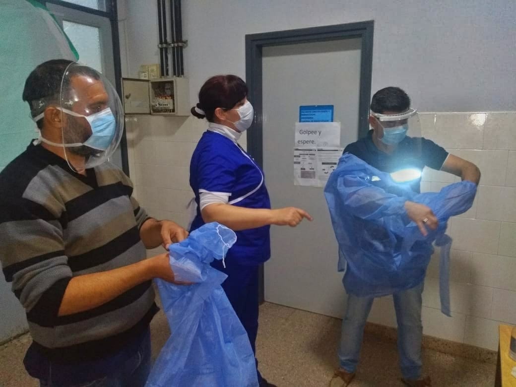 En primera instancia, se capacitaron los agentes de salud del hospital Félix A. Pértile de San Martín, con la presencia del director y la jefa del Departamento de Enfermería. Luego de la charla se realizó un recorrido por el sector Triage e internación para casos sospechosos y COVID-19 positivos, donde se brindaron algunas recomendaciones sobre limpieza, desinfección y el correcto uso de los equipos de protección personal.