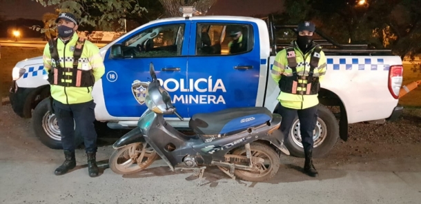 Anoche, alrededor de la hora 19:00, Motoristas de Caminera, ubicados sobre Av. Sarmiento y Calle Combate Vuelta Obligado, recuperaron una motocicleta marca Brava, modelo Nevada, 110 c.c., color gris.