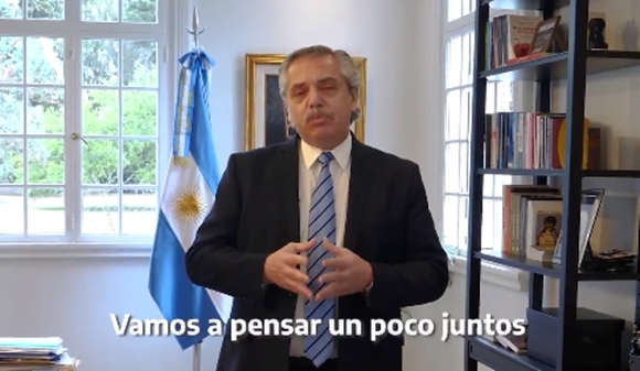 Alberto Fernández anuncia la extensión de la cuarentena a través de un mensaje grabado.