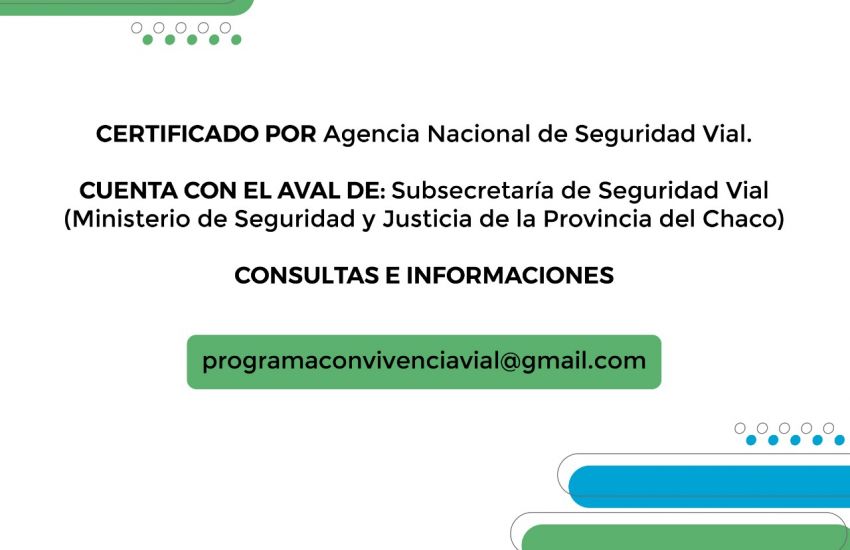La modalidad del curso será virtual a distancia, compuesta por dos encuentros virtuales sincrónicos y un complemento autogestivo de 3 módulos. El cupo es de 80 participantes, y para consultas y más información se puede escribir a la casilla de correo electrónico programaconvivenciavial@gmail.com. Los destinatarios son docentes, directivos de establecimientos educativos, y educadores del ámbito público y privado de la provincia. Los capacitadores integran el Centro de Formación en Políticas de Seguridad Vial de la Agencia Nacional de Seguridad Vial que coordina Sebastián Kelman. Dicha agencia es la que certifica la capacitación con el aval de la Subsecretaría de Seguridad Vial.