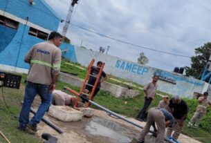 Pasados unos 40 minutos, el intendente se hizo presente en el lugar y dialogó con los manifestantes, a fin de llegar a un acuerdo sobre la problemática del agua.
