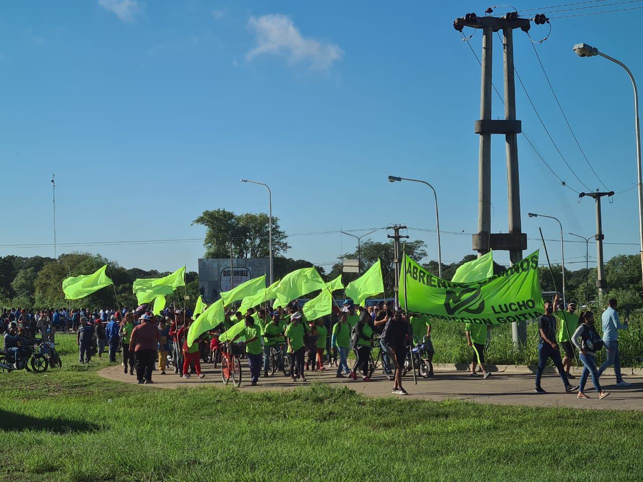 Este jueves por la mañana, desde las 8.30, integrantes de movimientos y organizaciones sociales se desplazaron desde la rotonda de la Avenida Sabín, donde concentraron, hacia el frigorífico para pedir donaciones de carnes para los merenderos.