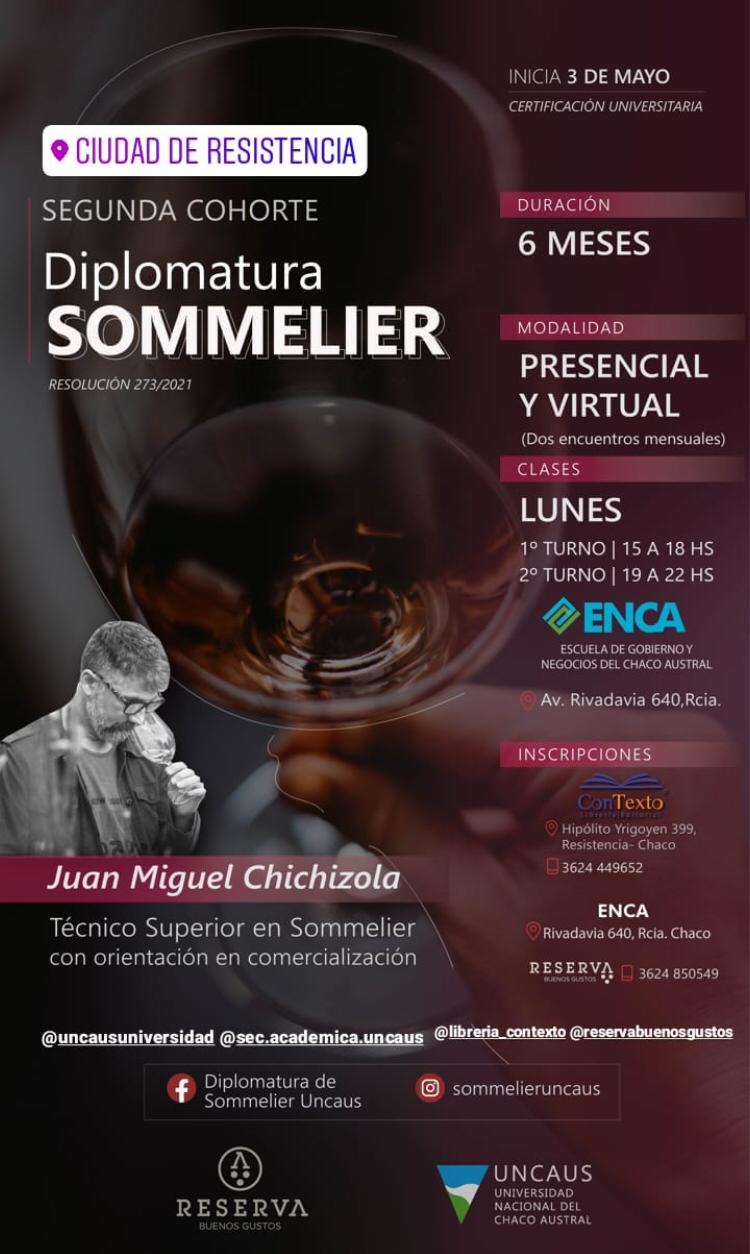 “Inclusive cada vez que hay una feria de vinos en el Chaco, se debe recurrir a la busca de sommelieres en otras provincias porque no hay en la zona”, se explayó. Por este motivo, expuso que el objetivo de la diplomatura es capacitar a personas para que que sepan comunicar sobre la importancia de esta bebida nacional y a su vez puedan brindar un servicio acorde a la materia gastronómica de la región.