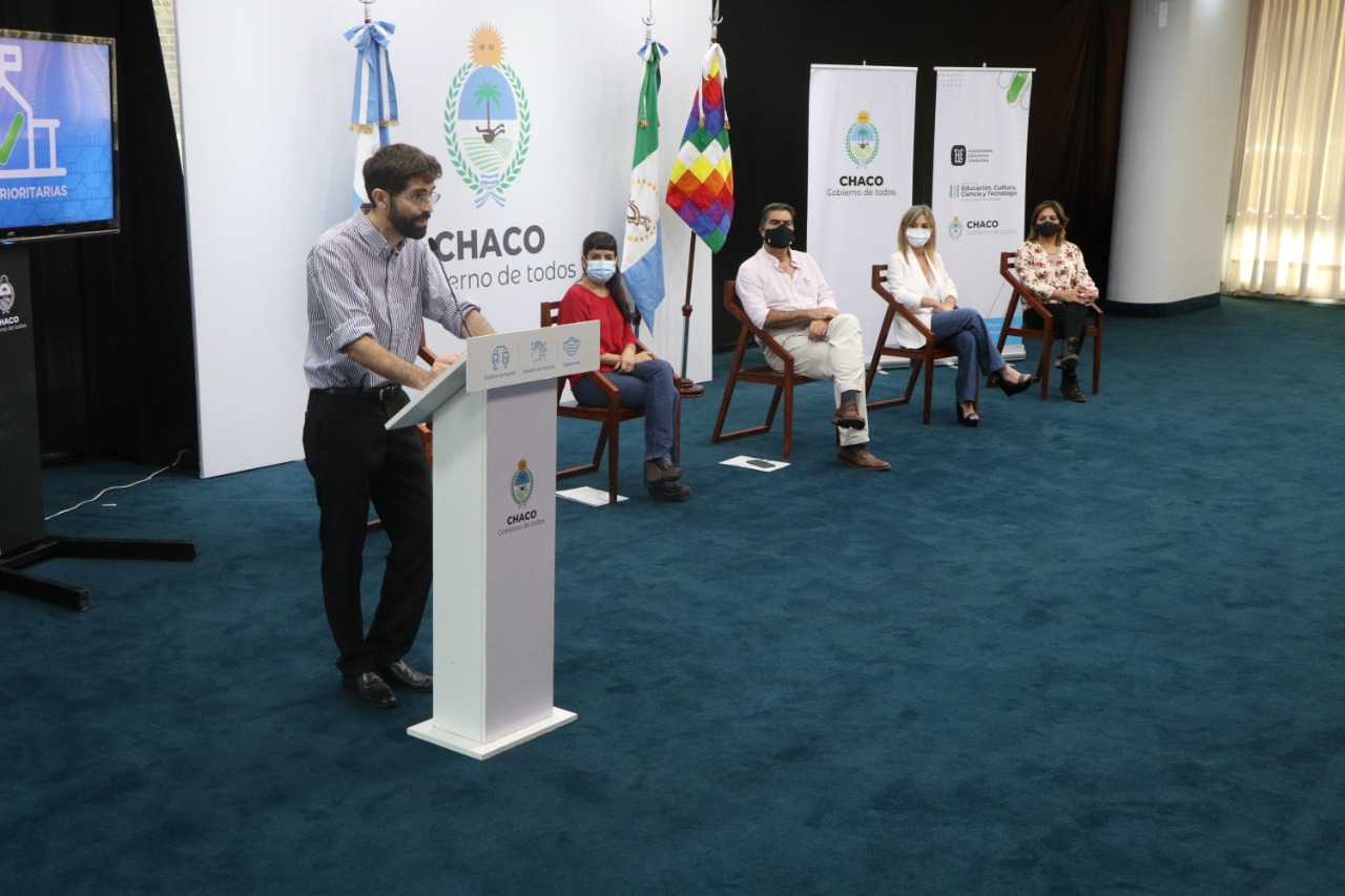 El gobernador Jorge Capitanich y la vicegobernadora Analía Rach Quiroga, junto a la ministra de Educación, Daniela Torrente, lanzaron este martes el programa Escuelas Prioritarias, que buscará nivelar y mejorar los procesos de aprendizaje en lectoescritura y resolución de problemas de aquellos estudiantes que se desenvuelven en contextos educativos ampliamente afectados por la pandemia.