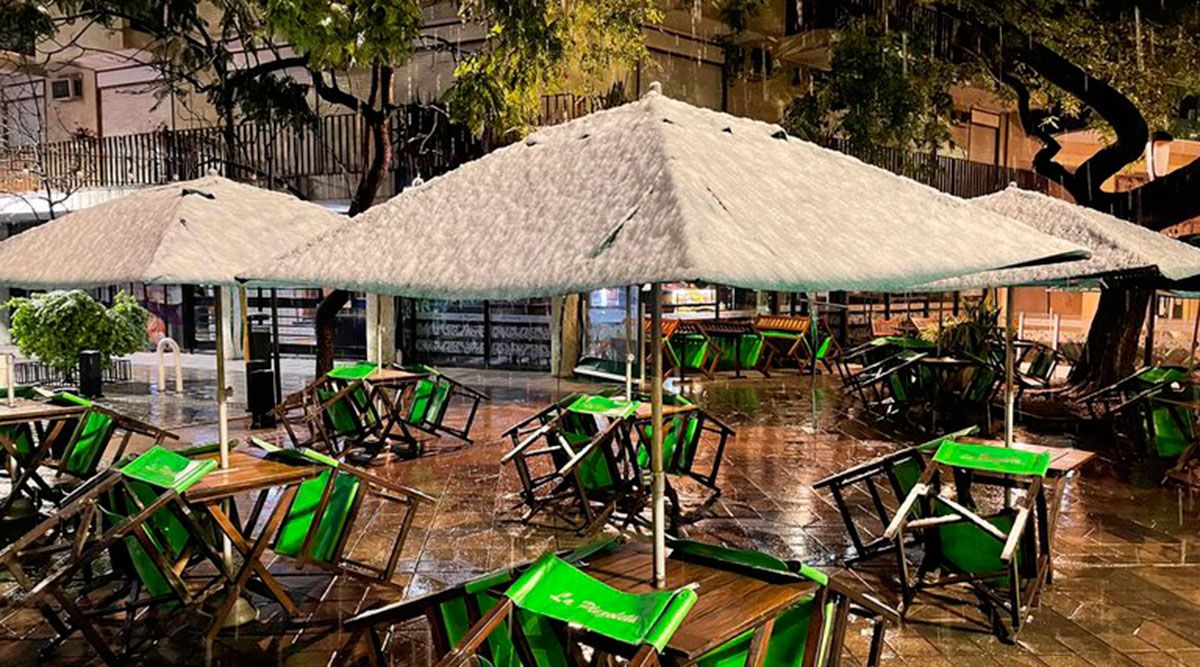 Tal como lo anunciaba el Servicio Meteorológico Nacional, una nevada cubrió de blanco a zonas de Córdoba capital.
