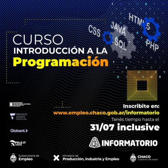 La Universidad Nacional del Chaco Austral (UNCAus) invita a inscribirse a este nuevo Curso, que se llevará a cabo junto con el Gobierno de la Provincia de Chaco, Globant, la Universidad Tecnológica Nacional y Polo IT.