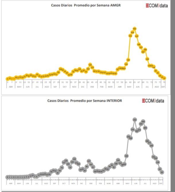 Los casos nuevos promedio diario por semana disminuyeron a 52 respecto a los 87 de la semana anterior destacándose el AMGR con 13 casos diarios.