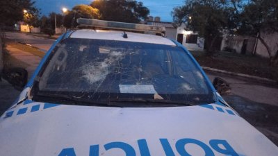 Madrugada tensa en la localidad termal. Un patrullero arribó a una vivienda donde un grupo de personas intentaban abrir la puerta, y agredieron a los efectivos.
