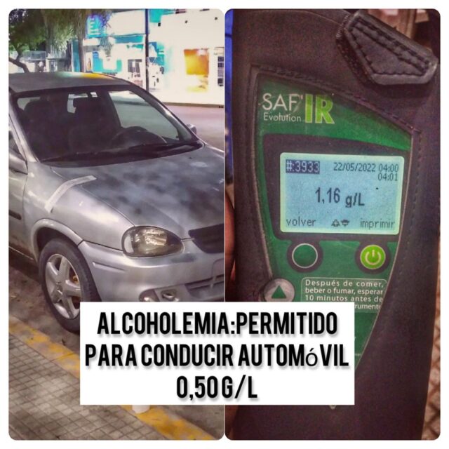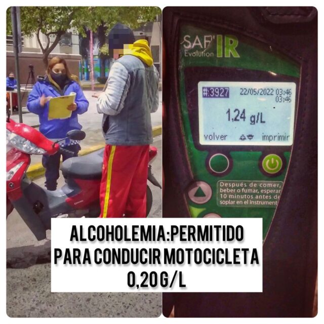 Cabe recordar que la Ley Nacional de Tránsito 24.449 vigente establece como límite permitido para conducir 0,5 g/l (gramos de alcohol por litro de sangre) para vehículos particulares, y 0,2 g/l para motocicletas. Para aquellos conductores que posean la licencia profesional, la tolerancia es «cero» cuando conducen vehículos de transporte.