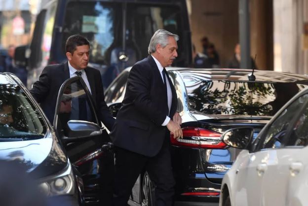 El presidente Alberto Fernández llegó minutos antes de las 14 a la casa de Cristina Kirchner, ubicada en la intersección de Juncal y Uruguay, en el barrio porteño de Recoleta. El jefe de Estado arribó en un vehículo oficial, que tomó la calle Juncal de contramano, y subió rápidamente al quinto piso del edificio, donde reside la ex mandataria.