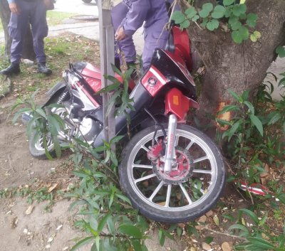 Sucedió hoy a la siesta, cuando dos jóvenes circulaban por la calle Arbo y Blanco al 1.100 en una motocicleta y le arrebataron una riñonera a una mujer y posteriormente chocaron contra un árbol.