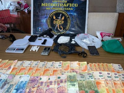 En el lugar, los efectivos incautaron 484 gramos de cocaína, unos 21 de marihuana, balanzas de precisión y más de 27 mil pesos en efectivo. También secuestraron varios elementos que podrían estar relacionados a la distribución de los estupefacientes.
