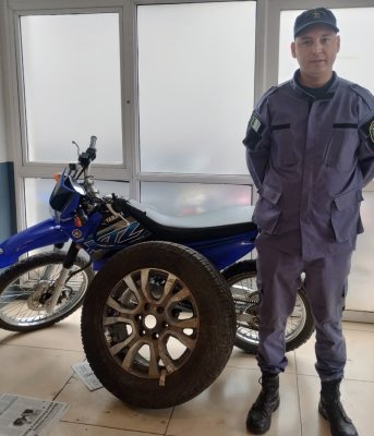 Alrededor de las 13:40, los agentes se encontraban realizando tareas preventivas por la jurisdicción, al circular por avenida Avalos al 200, avistaron a dos sujetos en una motocicleta marca Yamaha XTZ 125cc., llevando una rueda de un automóvil, quienes al notar la presencia policial intentaron darse a la fuga.