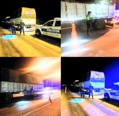 Por otra parte, a horas de la madrugada en Ruta Nacional 16 Km 172, demoran a un camión marca Iveco, modelo 200S36 C9 con acoplado. Seguidamente, al solicitar las documentaciones al conductor, no coincidían con la carga que transportaba.