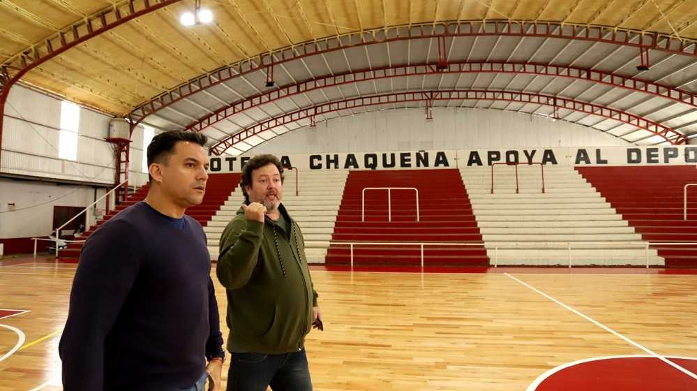 El titular de Lotería Chaqueña y el presidente del club, Edgar Iván Stoyanoff, observaron los avances de obras de esta tradicional entidad deportiva. Mediante el financiamiento de Lotería Chaqueña se viene avanzado en esta segunda etapa que consiste en la sustitución de piso parquet de la cancha principal de básquet, colocación de chapas laterales al micro estadio, sustitución de canaletas, la colocación de una tribuna y las refacciones del vestuario del equipo local.