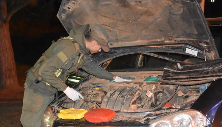 El hecho ocurrió durante un control de rutina en la Ruta Nacional 12, cuando los efectivos notaron irregularidades en las sujeciones del parallamas del vehículo. Al inspeccionar el automóvil, que se dirigía desde Ituzaingó hasta Paso de los Libres, se encontraron dos personas a bordo, un hombre y una mujer, ambos mayores de edad.