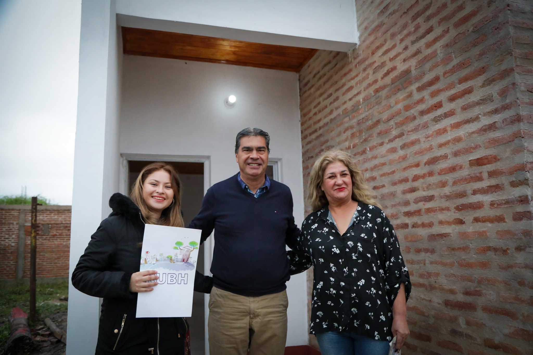 Este sábado por la mañana el gobernador Jorge Capitanich visitó a familias del barrio Las Palmeras de Resistencia, donde entregó nuevas viviendas a beneficiarios para garantizar el derecho al techo digno.