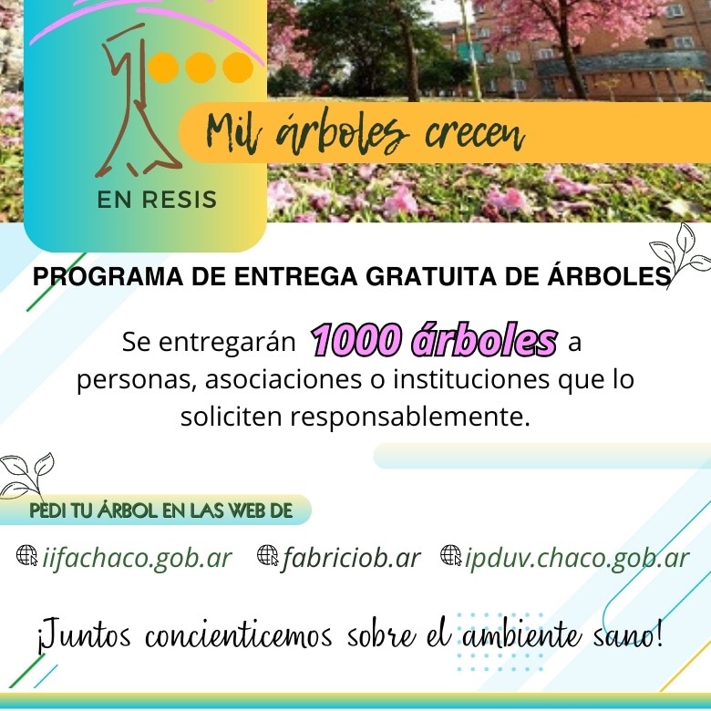 En el marco del Día del Árbol, el Concejal y candidato a Presidente del Concejo por el Frente Chaqueño, Fabricio Bolatti, en conjunto con la Subsecretaría de Desarrollo Forestal dependiente del Ministerio de Producción, Industria y Empleo, a cargo del Luciano Olivares; el Instituto de Investigaciones Forestales y Agropecuarias (IIFA), en la persona de Angélica Kees; el Instituto Provincial de Desarrollo Urbano y Vivienda (IPDUV) a través de su vocal Mariano Brahim, dieron inicio a la campaña socioambiental “Mil árboles crecen en Resis”..