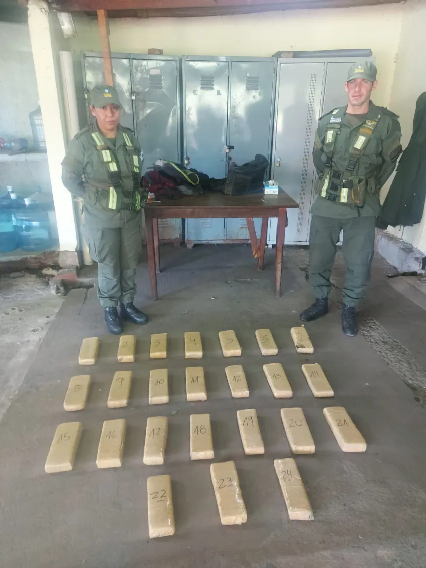 La cantidad de 24 paquetes tipo «ladrillos», cargados de marihuana, fueron hallados en tres mochilas llevadas por un hombre en un minibús que salió desde la localidad de #tatí hacia Capital. En un control sobre la Ruta 12 efectivos de Gendarmería Nacional, de la Sección de Seguridad Vial dependiente del Escuadrón 48, descubrió el tráfico de estupefacientes.