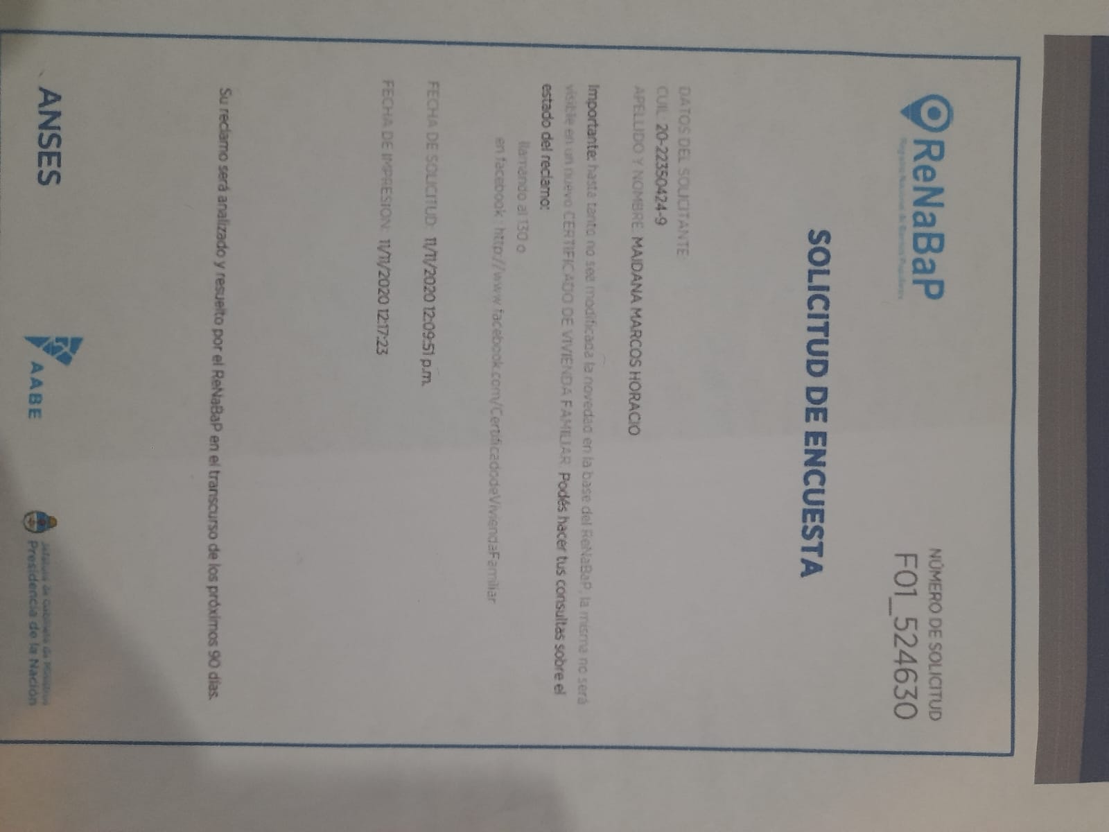 «Tengo documentos y actas en los que se acredita que vivo en esta casa, que habito junto a mi familia. Uno es un certificado nacional en el que aparece mi nombre y apellido», dijo Marcos y lo fundamentó con la imagen del certificado que aparece en esta nota.