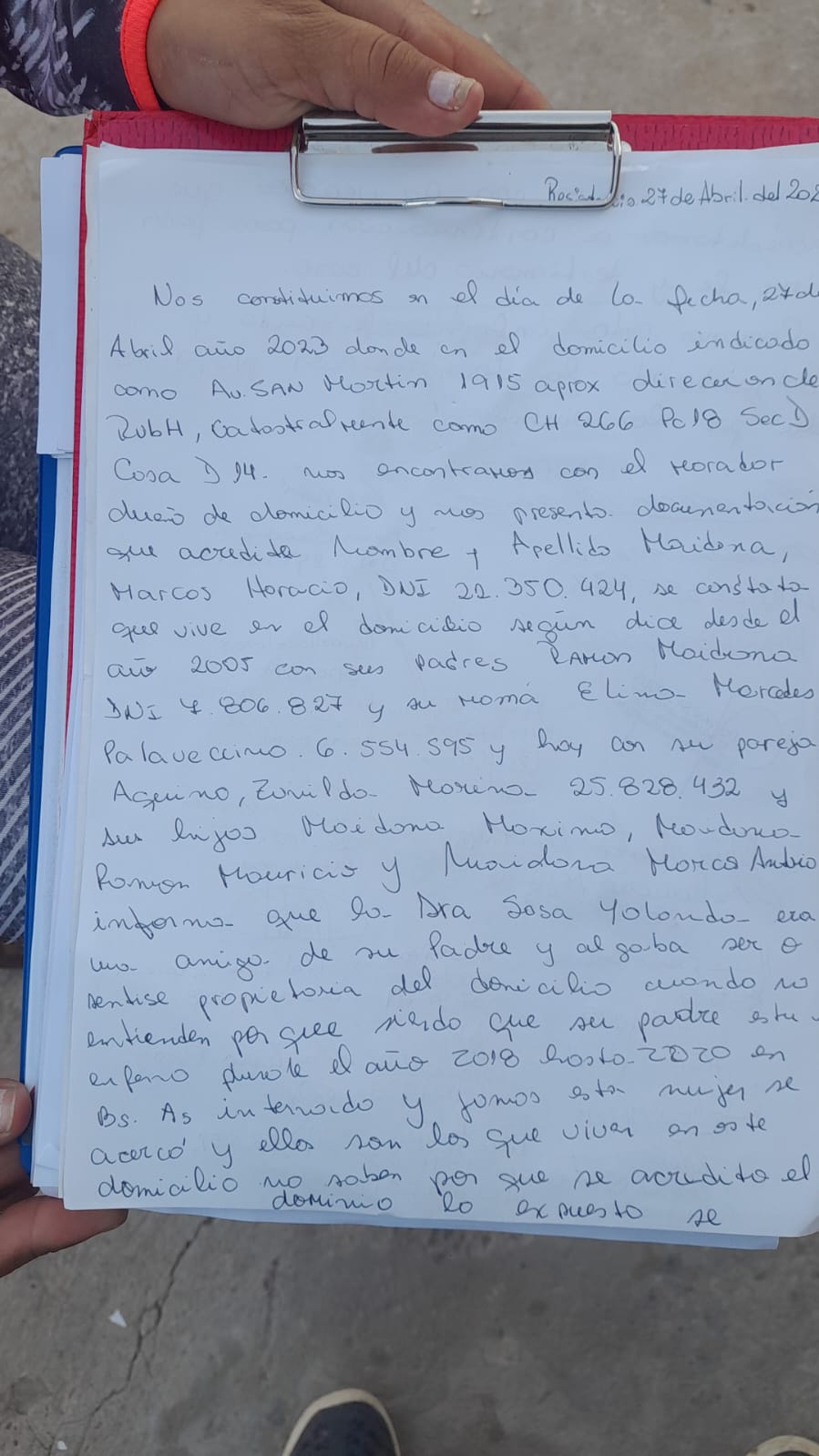 Maidana también reveló que hubo un acta en el que solicitó la constatación de hábitat y que la misma fue firmada tanto por él y sus vecinos como también por la funcionaria Vanesa Jarolin, secretaria de Obras y Servicios Públicos de la Municipalidad de Barranqueras.