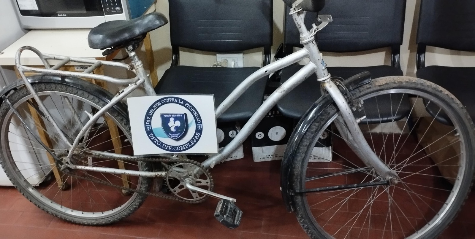 Pasado este mediodía, los agentes de la división Delitos Contra la Propiedad detuvieron a un hombre de 33 años en calle Doctor Reggiardo al 1.100 de Resistencia. El ciudadano circulaba en una bicicleta playera que había sido denunciada como sustraída hace poco más de un año. El hombre terminó aprehendido por la causa de “Supuesto Hurto” y la bici volvió a manos de su dueña.