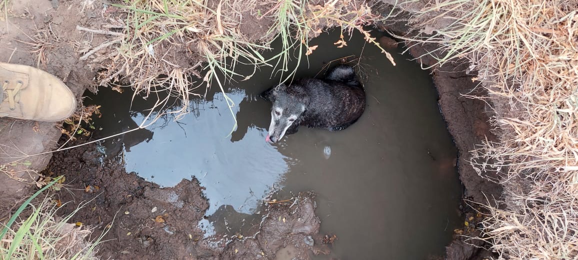 Cerca de las 9, los efectivos tomaron conocimiento que en calle Juan B. Justo al 126 aproximadamente, habría caído un perro a un pozo sin poder salir.