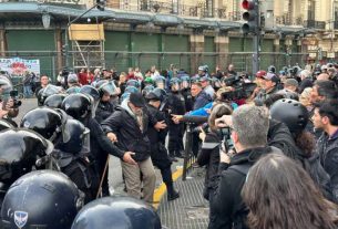 Este martes, la Municipalidad de Resistencia fue rodeada por un cordón policial para evitar el avance de los trabajadores despedidos que se encuentran realizando protestas frente al edificio. La comuna capitalina comunicó ayer la anulación de 432 pases a planta, que se harán efectiva a partir del 1° de abril.