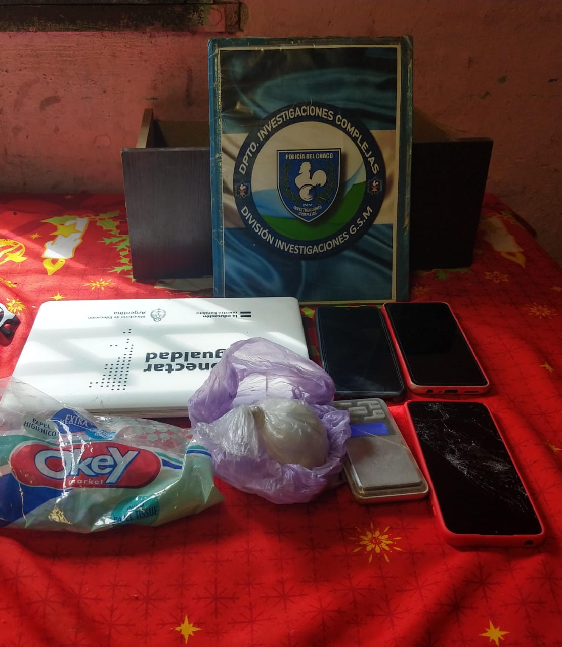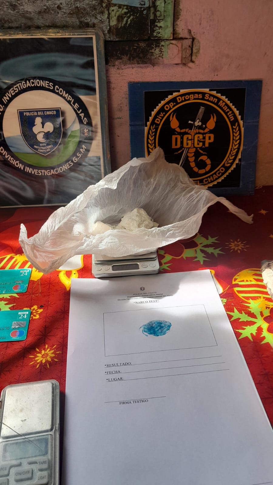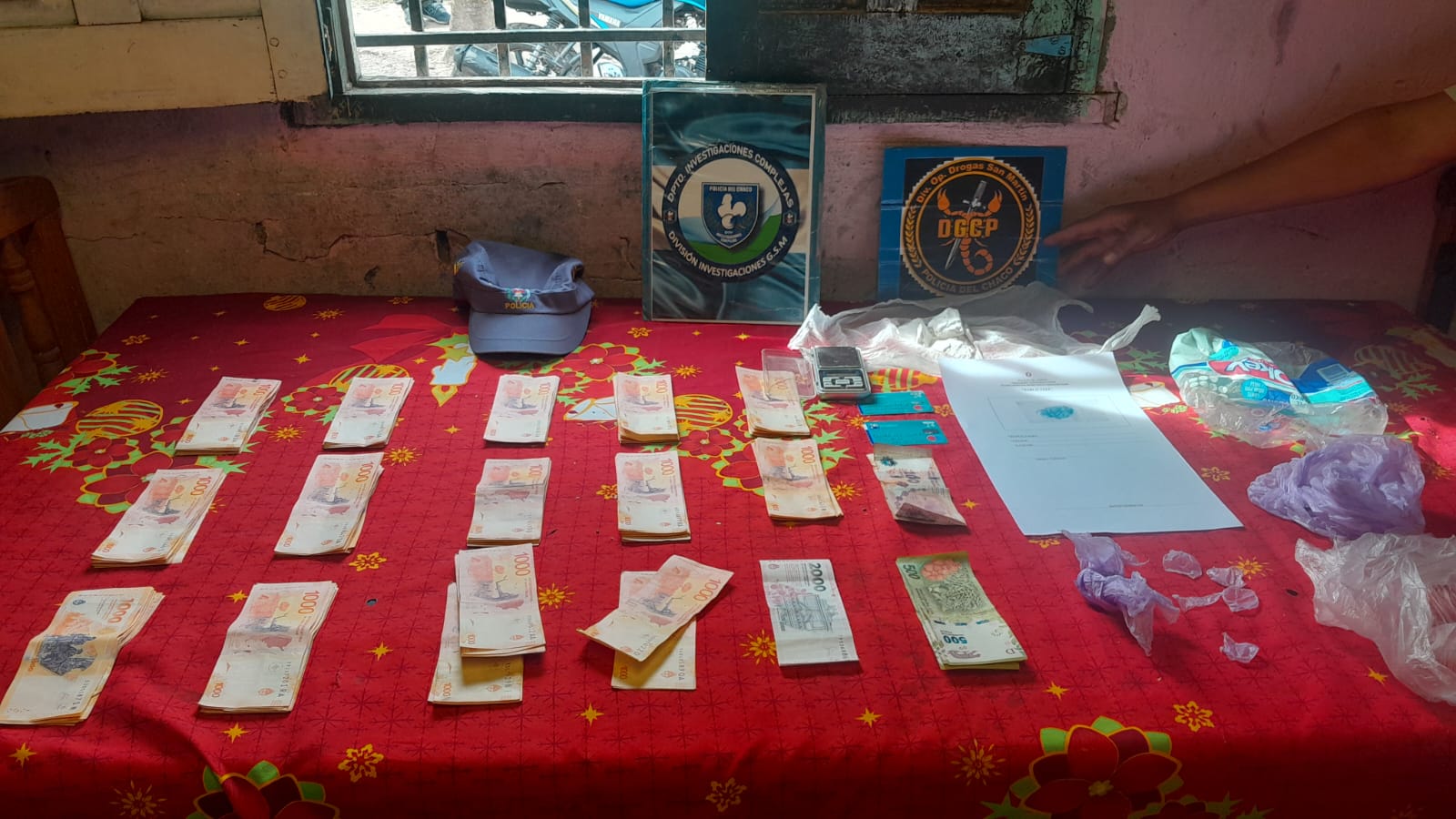 En la inspección como secuestro impostergable, incautaron una notebook, un equipo de montar, un lazo y una soga, además de 136.700 pesos y una bolsa de nylon color violeta que contenía 81.83 gramos de cocaína de acuerdo al pesaje y pruebas realizadas por los agentes de la División Operaciones Interior de General San Martín.