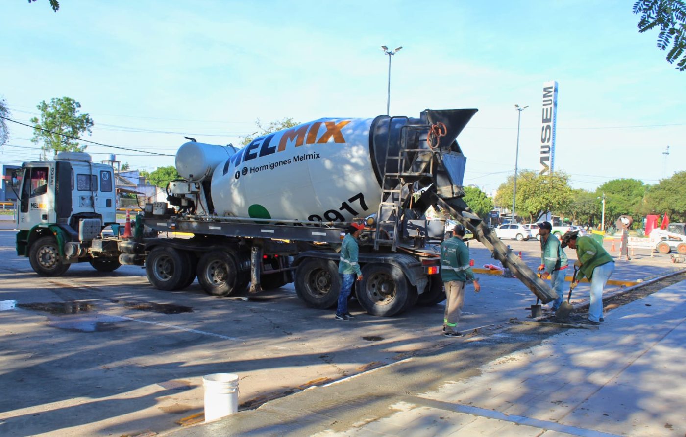 Como parte del apoyo que realiza la Municipalidad en torno a la edición 2024 de la Bienal de Esculturas, se están reparando las veredas y cordones de la playa de estacionamiento del Domo del Centenario “Zitto Segovia”.