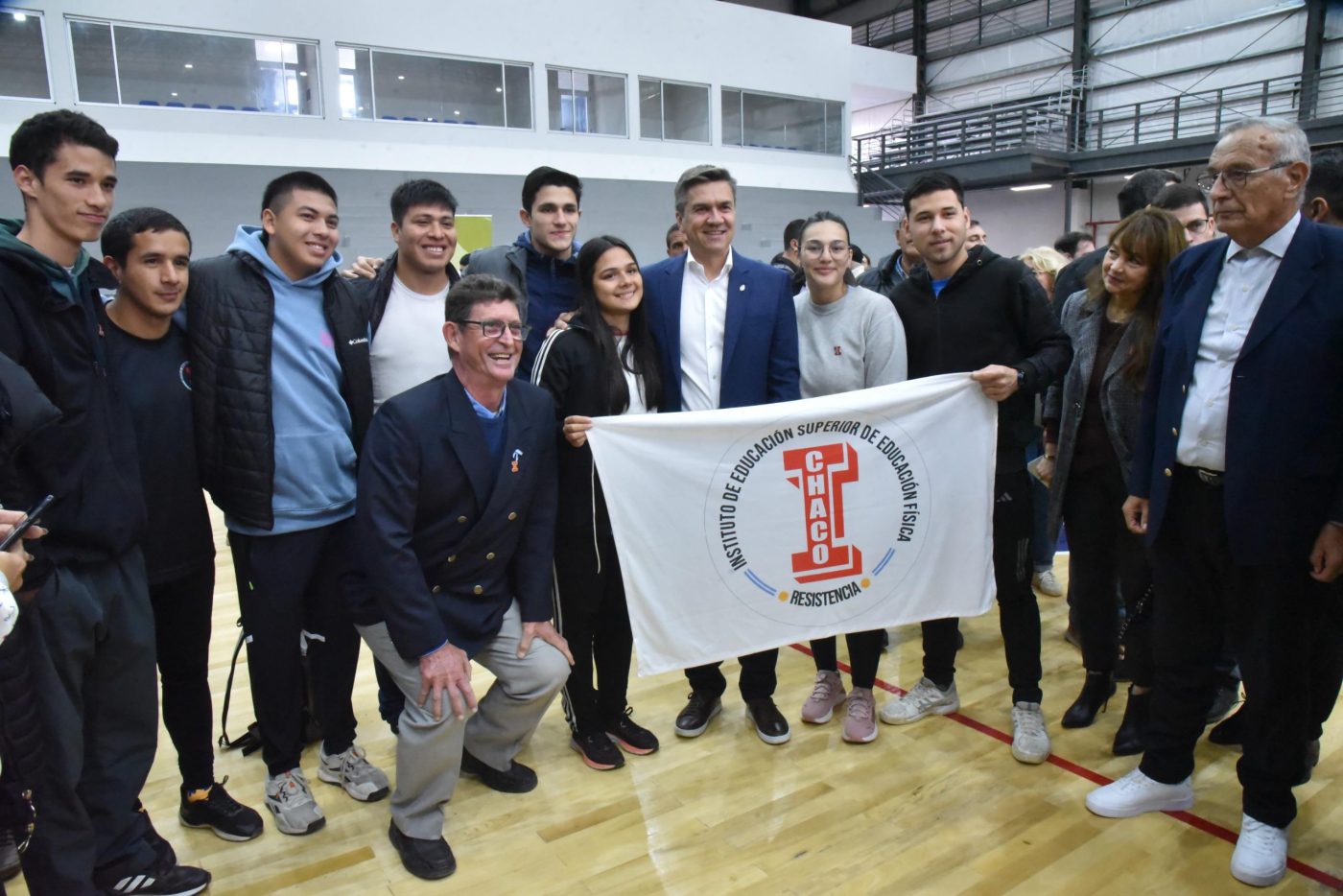 En un acto realizado en la cancha de básquet, el gobernador inauguró las reformas del predio donde además funcionarán las sedes del Instituto de Educación Superior de Educación Física (IESEF) y de la Fundación Deportiva Social del Chaco (DESOCHA). Así, el lugar concentrará las instituciones deportivo-educativas de mayor referencia, con estadio cubierto, gimnasios, piletas, aulas y oficinas administrativas.