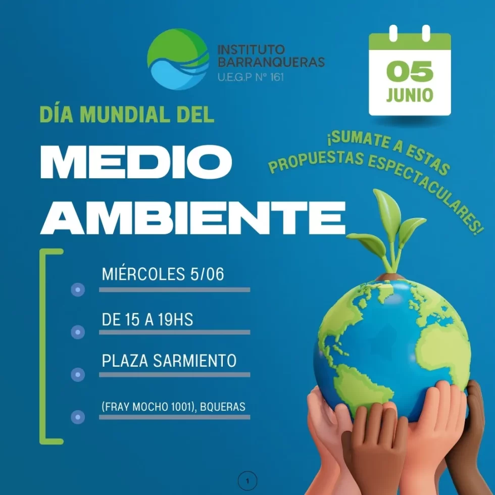 El próximo 5 de junio, el Instituto de Barranqueras (IB) invita a toda la comunidad a unirse a la celebración del Día del Ambiente en la Plaza Sarmiento de Barranqueras, de 15 a 19 hs. Este evento, diseñado para promover la conciencia y el cuidado ambiental, contará con una serie de actividades enriquecedoras y dinámicas, lideradas por el cuerpo estudiantil.