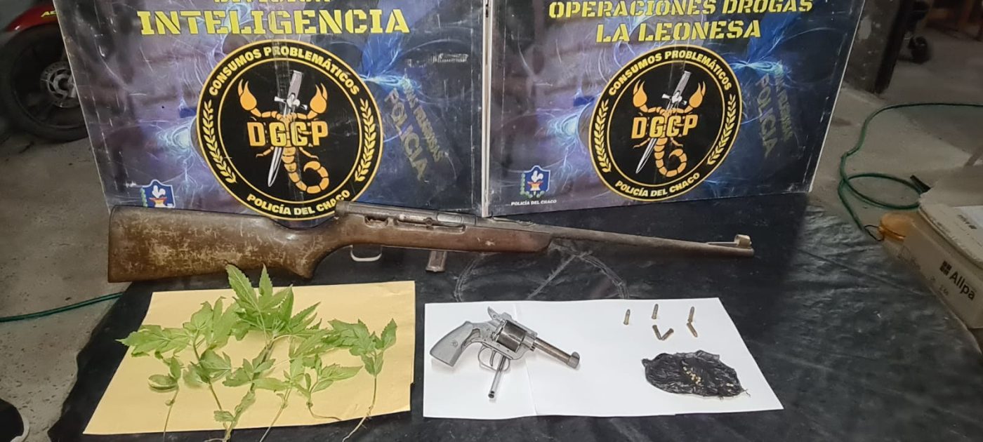 El segundo fue en el barrio Ángel de la Guarda. Allí secuestraron bochitas de marihuana, plantas y dos armas de fuego. Además, se procedió a la aprehensión de un hombre de 26 años.