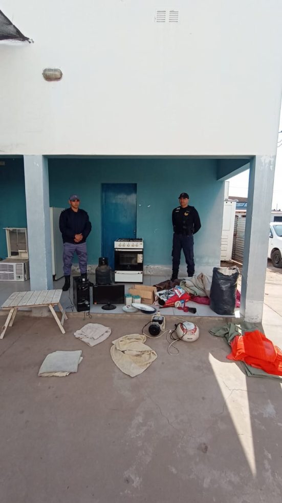 Ante esto los policías se dirigieron al domicilio ubicado en el Barrio Juan Jose Valle, donde fueron atendidos por la concubina del detenido quien hizo entrega de forma voluntaria de una cocina, tres toallones, cuatro frazadas, una CPU con mouse, un monitor de escritorio, cinco cortinas, una garrafa una bomba de agua y un radiograbador.