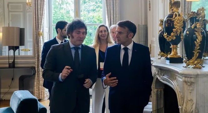 El encuentro entre Javier Milei y su par francés duró aproximadamente una hora y se llevó adelante durante el medio día en el Palacio Eliseo como estaba previsto.