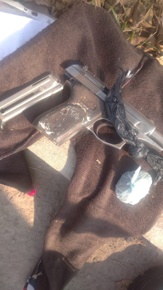 Poco después, una patrulla del 911 arribó al lugar, encontrando al agente con una mujer de 23 años retenida. En su poder se halló un pantalón que contenía una pistola calibre 22, junto con dos pequeñas bolsas con 12.6 gramos de marihuana y un envoltorio con 3.2 gramos de cocaína.