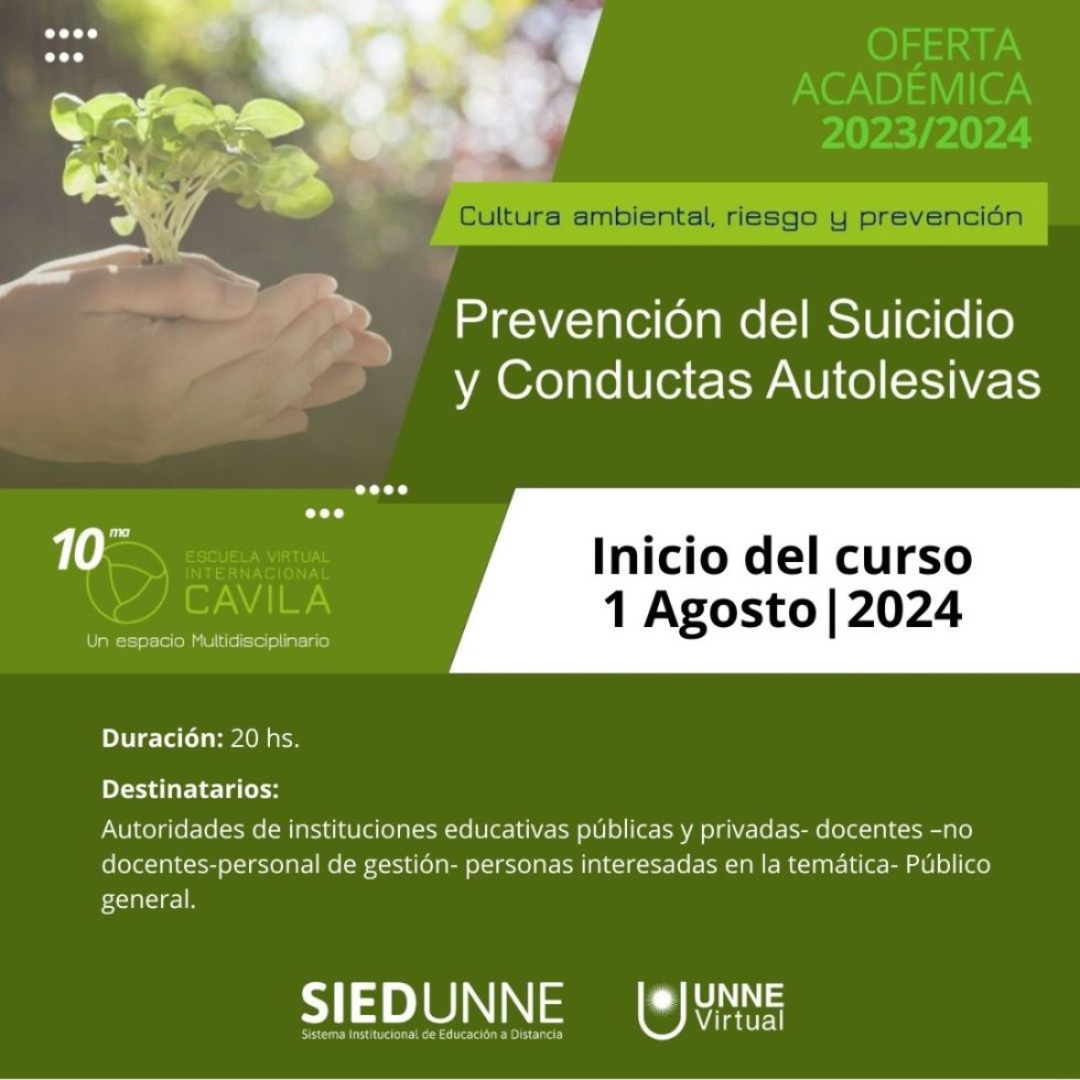 Desde el próximo 1 de agosto, a través del Campus Virtual Eurolatinoamericano (CAVILA), la Universidad Nacional del Nordeste dictará el curso “Prevención del Suicidio y Conductas Autolesivas” orientado a sensibilizar a la comunidad promoviendo el compromiso en la prevención del suicidio para así lograr detectar ocasiones y factores de riesgo.