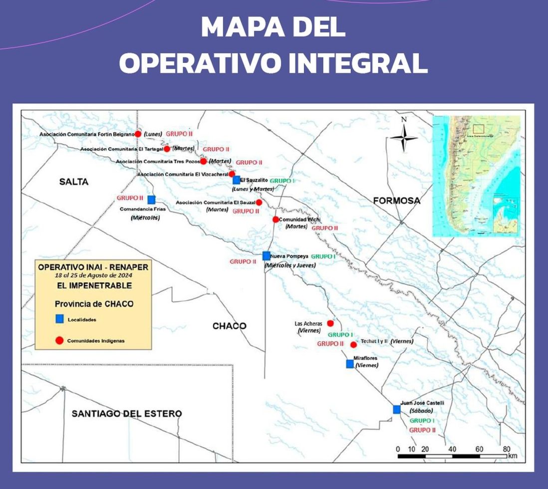 La semana del 19 al 25 de agosto los habitantes de la zona podrán realizar trámites gratuitos de DNI. Además, brindarán asistencia el Instituto Nacional de Asuntos Indígenas, Secheep y las carteras de Salud Pública, Desarrollo Humano y Gobierno.