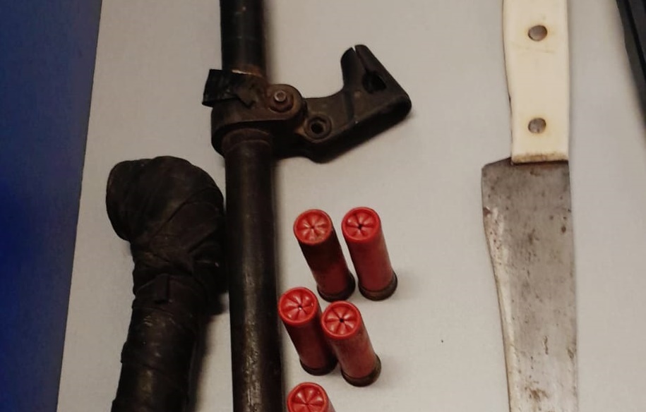 Es así que rápidamente los efectivos montaron un rastrillaje en inmediaciones del barrio Parque Industrial 02 y de la casa de la ciudadana, donde lograron demorar a un hombre de 52 años, quien en poder tenía un cuchillo tramontina y un arma de fabricación casera con cinco cartuchos.