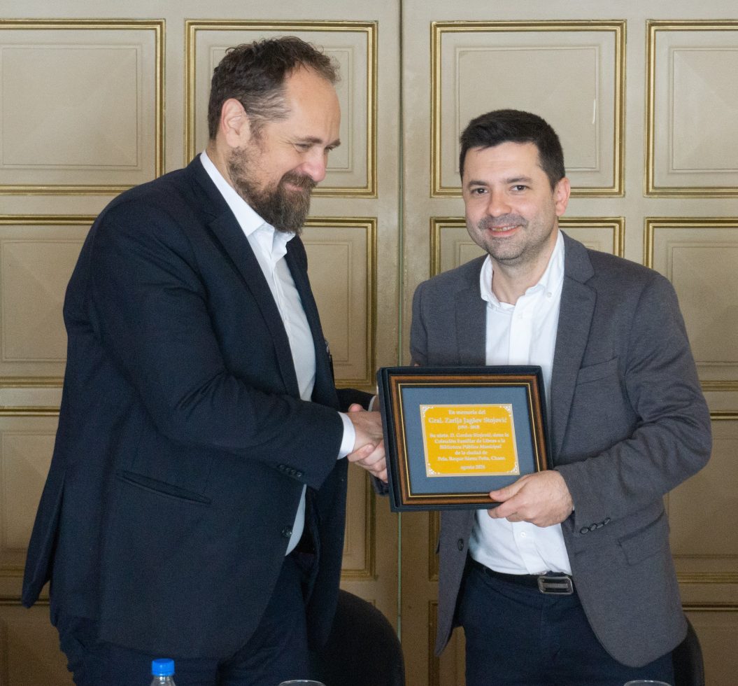 En la ocasión, se hizo entrega de una placa, en memoria de su abuelo el Gral. Stojovic, haciendo alusión a la donación de dicha colección familiar de libros.