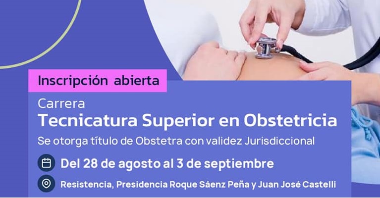 Del 28 de agosto al 3 de septiembre, la Escuela Superior de Salud Pública (ESSP) abre la inscripción para Obstetricia en Resistencia y las extensiones áulicas de Sáenz Peña y Castelli.